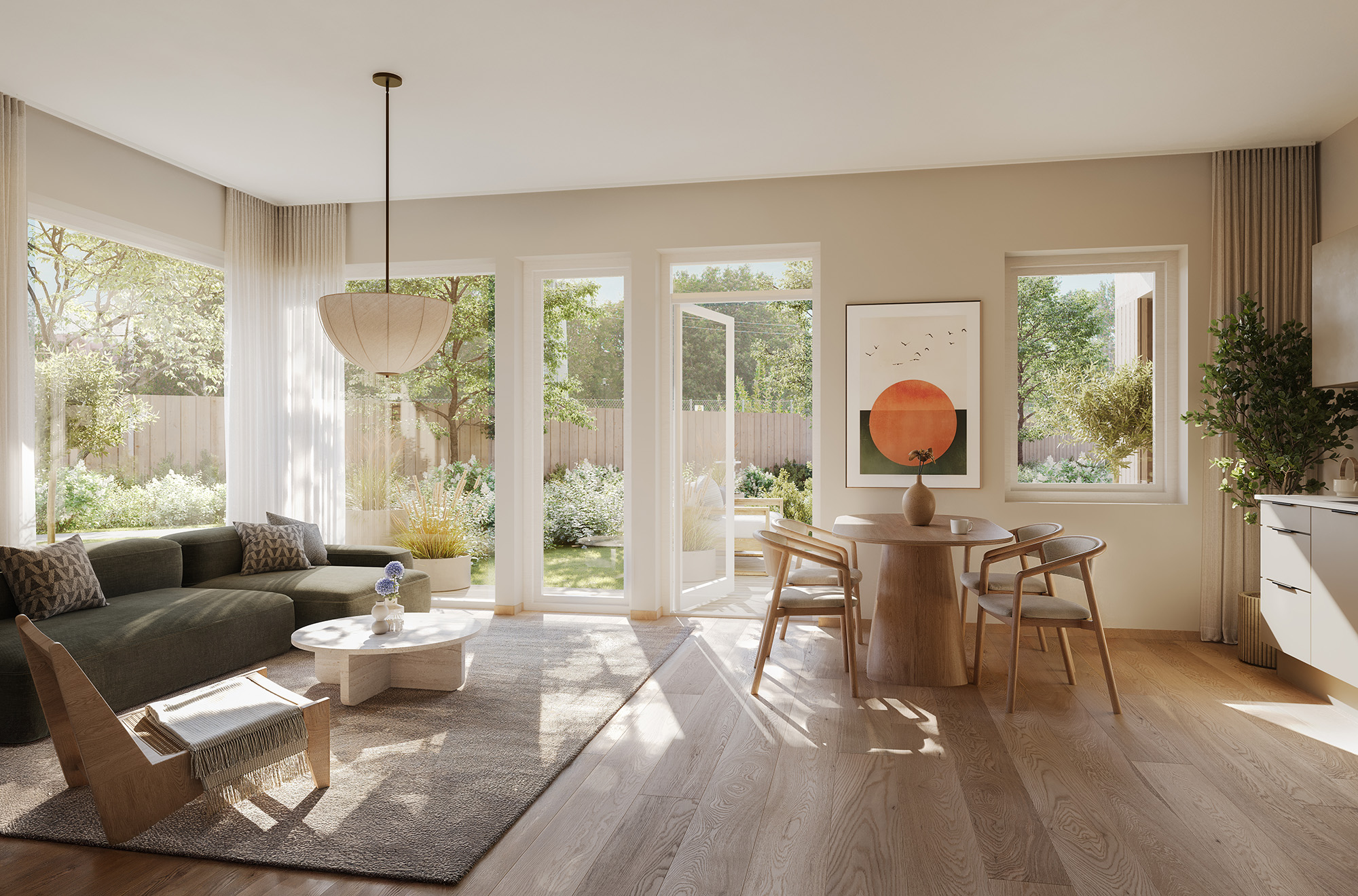 Leil. C202. Med sine store vindusflater vil rommet i denne hjørneleiligheten være luftig og føles stor. Her blir naturen virkelig en del av rommet.